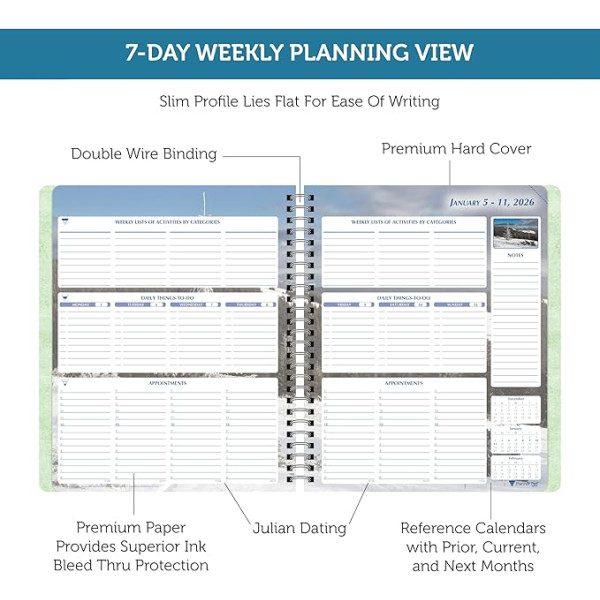 Schedule a full year of important activity on a two page spread. You get the current calendar year, plus next two years. Great for planning meetings, deadlines, special projects and vacation time.