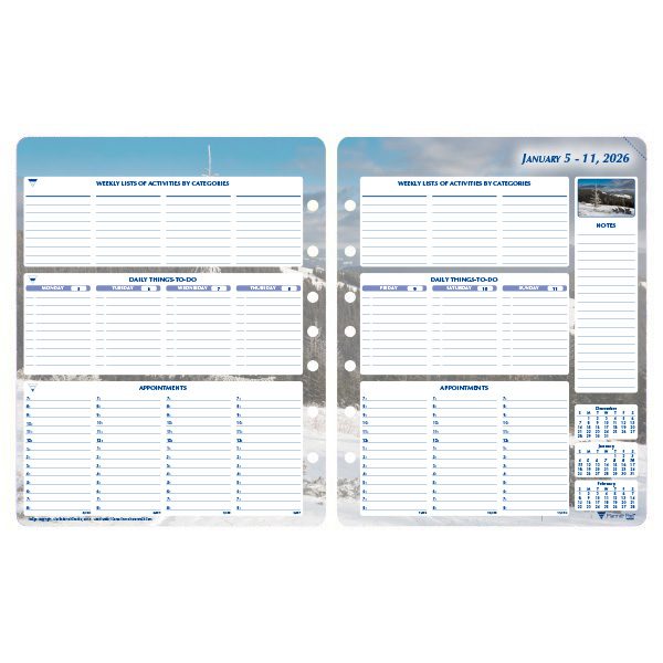 See all your plans for the entire week on two pages. Helps you think in a logical order. Makes it easy to decide what deserves your attention. Funnels events from idea stage to point of action. A productive work flow is established. You work smarter.