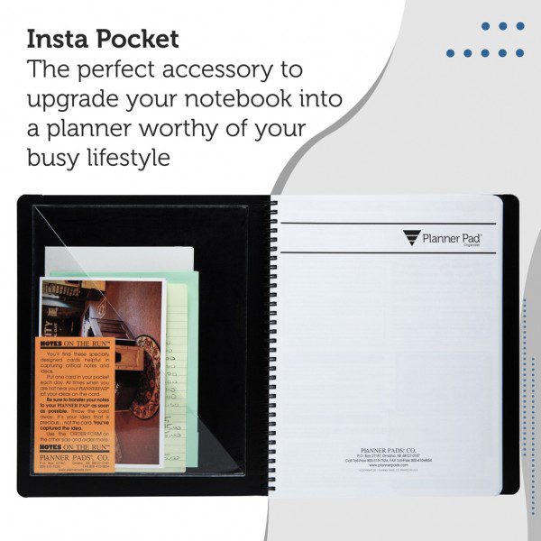 Clear vinyl pocket with slant opening and self adhesive back perfect for holding business cards, letters, and Notes on the Run cards.